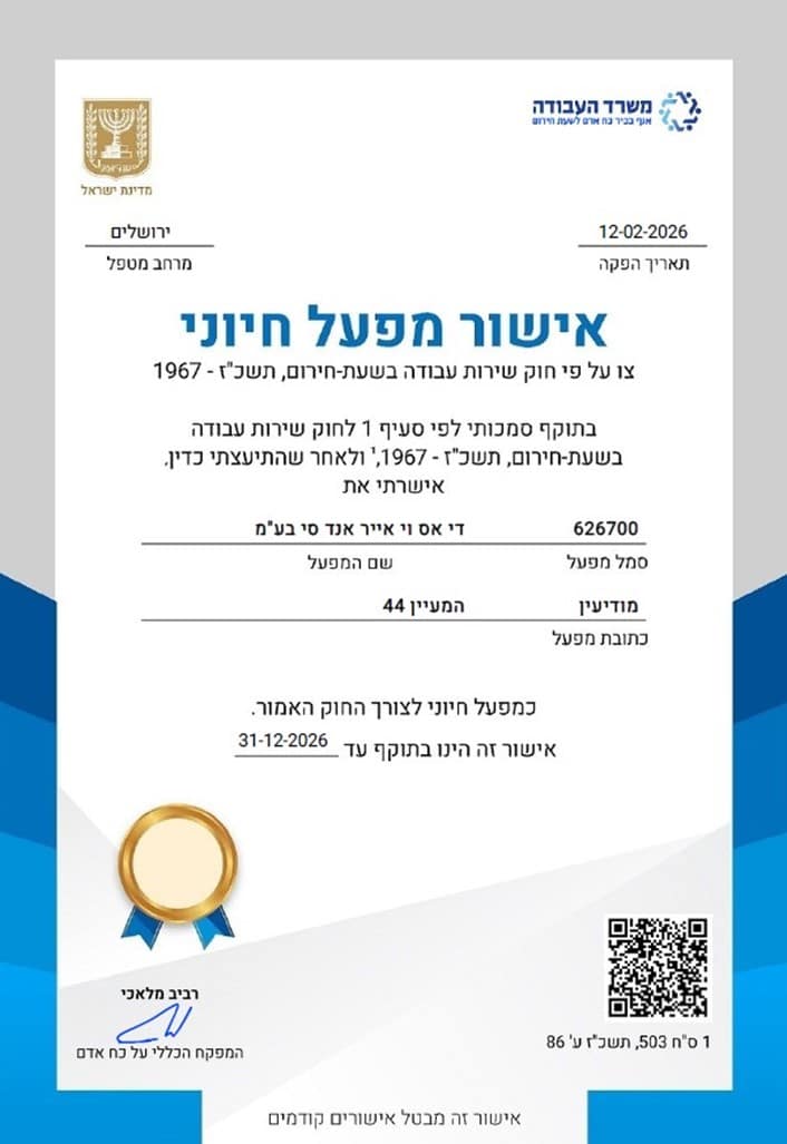 We would like to inform you that the Ministry of Labor has officially recognized DSV Israel as an 'Essential Enterprise'.