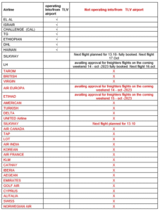 עדכון סטטוס חברות התעופה הטסות ל/מ ישראל 12.10.2023
